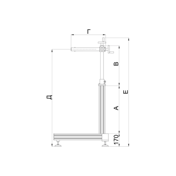 Стойка с горизонтальной регулировкой для аппликатора этикеток Compact 110, вертикальная опора 1600 мм, горизонтальная регулируемая труба 430 мм, регулировка 220 мм