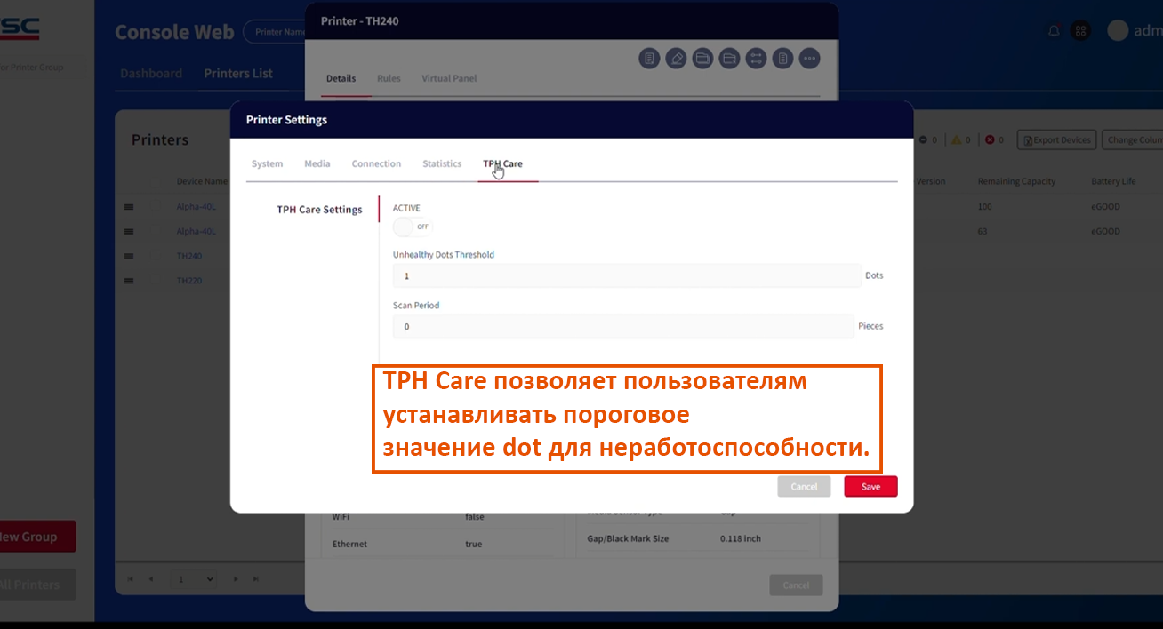 Также для корректной работы принтеров с TSC Console Web необходимо обновить прошивки.