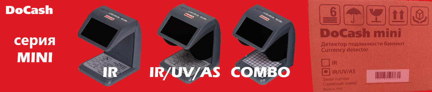 Детекторы банкнот Docash – автоматические просмотровые детекторы, предназначенные для проверки купюр на подлинность. Бренд DoCash предлагает просмотровые детекторы — ультрафиолетовые и инфракрасные, а также автоматические устройства для проверки наличных. В каталоге представлены модели для операционистов и портативные приборы для визуального контроля защитных меток. Одной из популярных серий является Docash MINI. Линейка представлена тремя моделями, которые в короткий период завоевали особенную популярность.