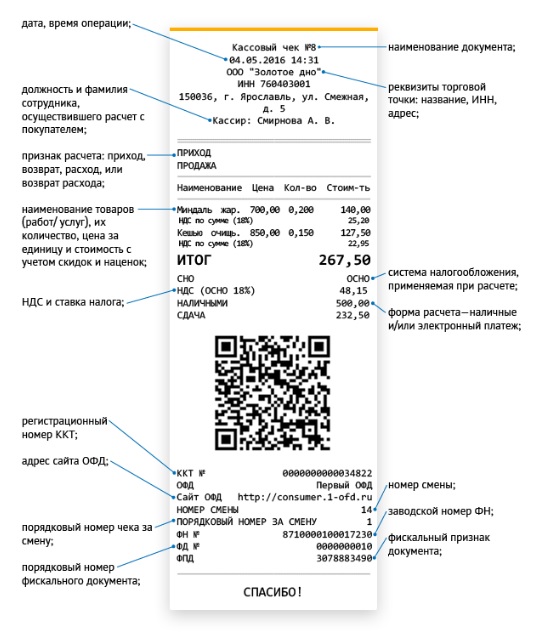 Помимо распечатанного бумажного чека копия может быть отправлена покупателю на электронный адрес почтового ящика или же на смартфон, по личному пожеланию покупателя. Сам чек немного видоизменился, в нем появилась дополнительная информация о Федеральном Налоговом органе. Для удобства покупателя имеется ссылка, переходя по которой можно убедиться, что все данные о проведенной торговой операции перешли в ФНС. Если нет, то здесь же покупатель может оставить жалобу, не оставив тем самым недобросовестному предпринимателю никаких шансов на дальнейшие обманные действия.