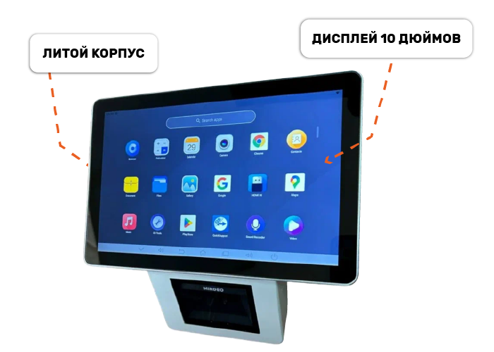 - Отличная производительность. В модели Mindeo F10 была решена проблема с переохлаждением, благодаря чему устройство подходит для использования в высоконагруженных системах ритейла. Мощный процессор Cortex-A55x4 1,8 ГГц обеспечивает быструю обработку данных и высокую скорость сканирования при интенсивном использовании.
