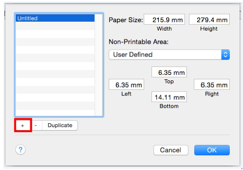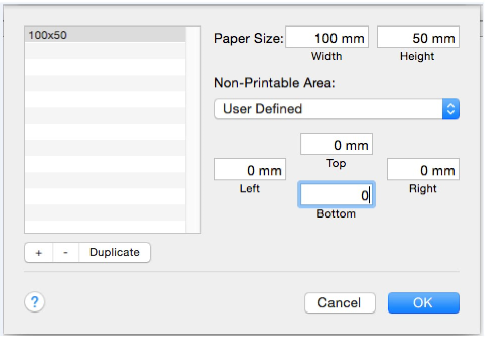 - Там же можно добавить нужный размер этикетки через клавишу Add (+).
