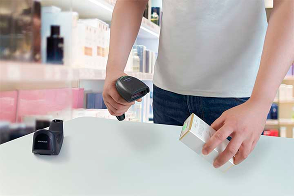 Беспроводной сканер 1D Линейный лазерный, 630 nm, минимальная контрастность 15%, 3 mil, 400 скан/сек, Bluetooth, аккумулятор 2550 мАч, Wireless Charging